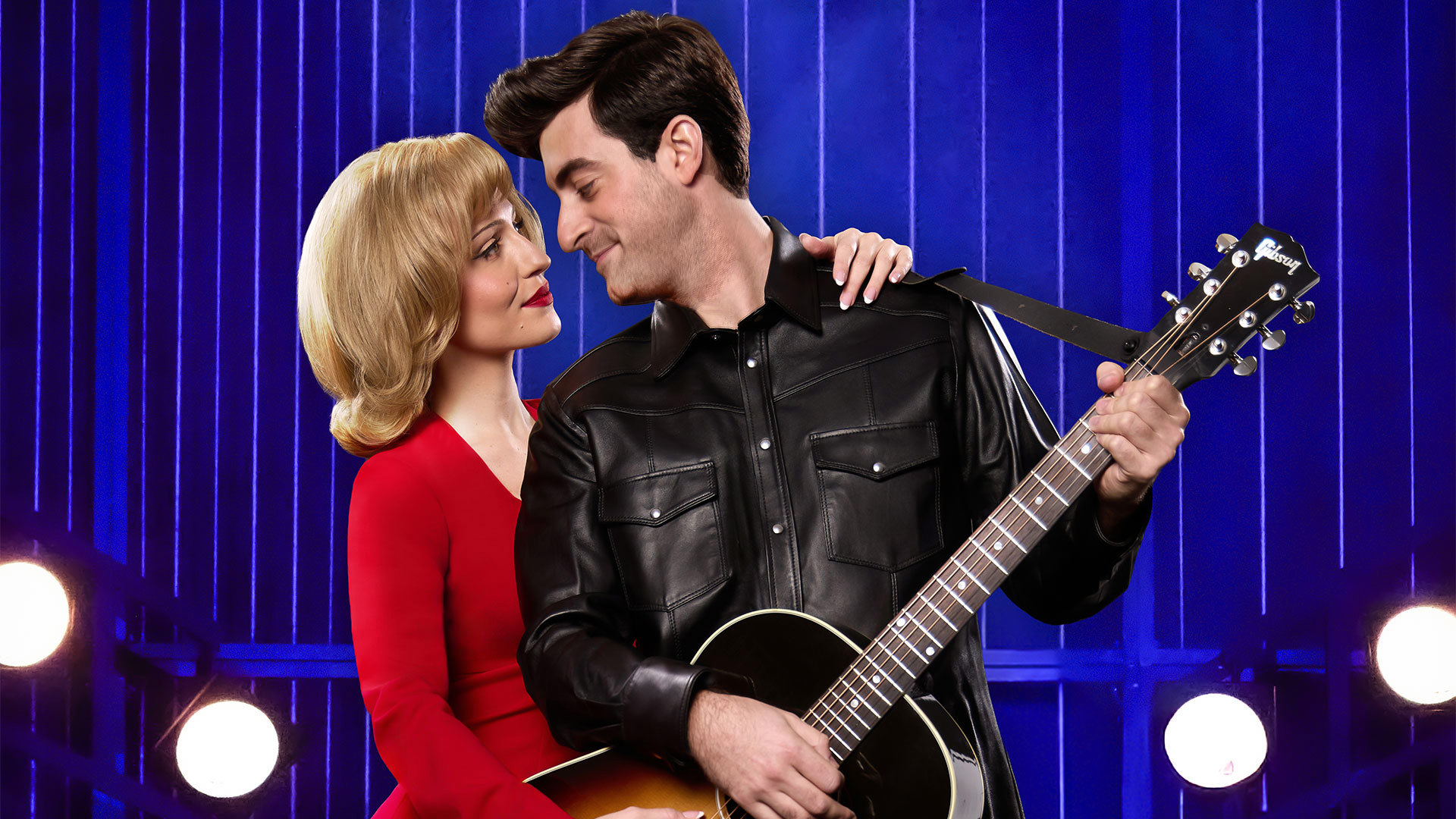 Ryahn Evers as Marcia Murphey (left) and Max Braunstein as Neil - Then (right) in A Beautiful Noise: The Neil Diamond Musical. Photo by Jeremy Daniel.