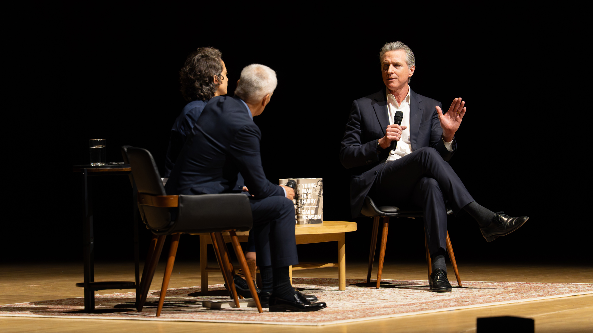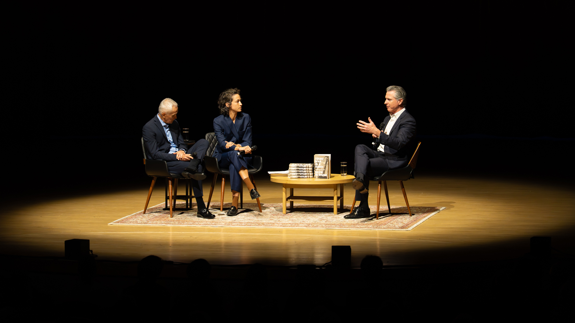 Jorge Ramos and Paola Ramos interviewed California Governor Gavin Newsom March 13 at the Knight Concert Hall. Photo by WorldRedEye.com.