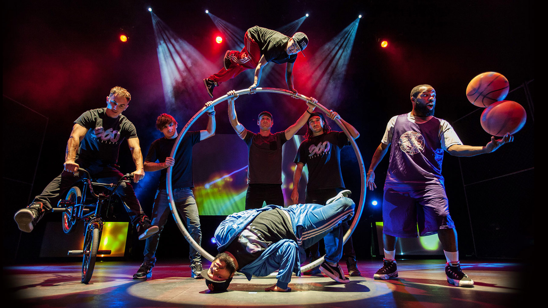 A phenomenal physical performance exploring all forms of rotation, 360 ALLSTARS connects the street with the elite to deliver a supercharged urban circus.